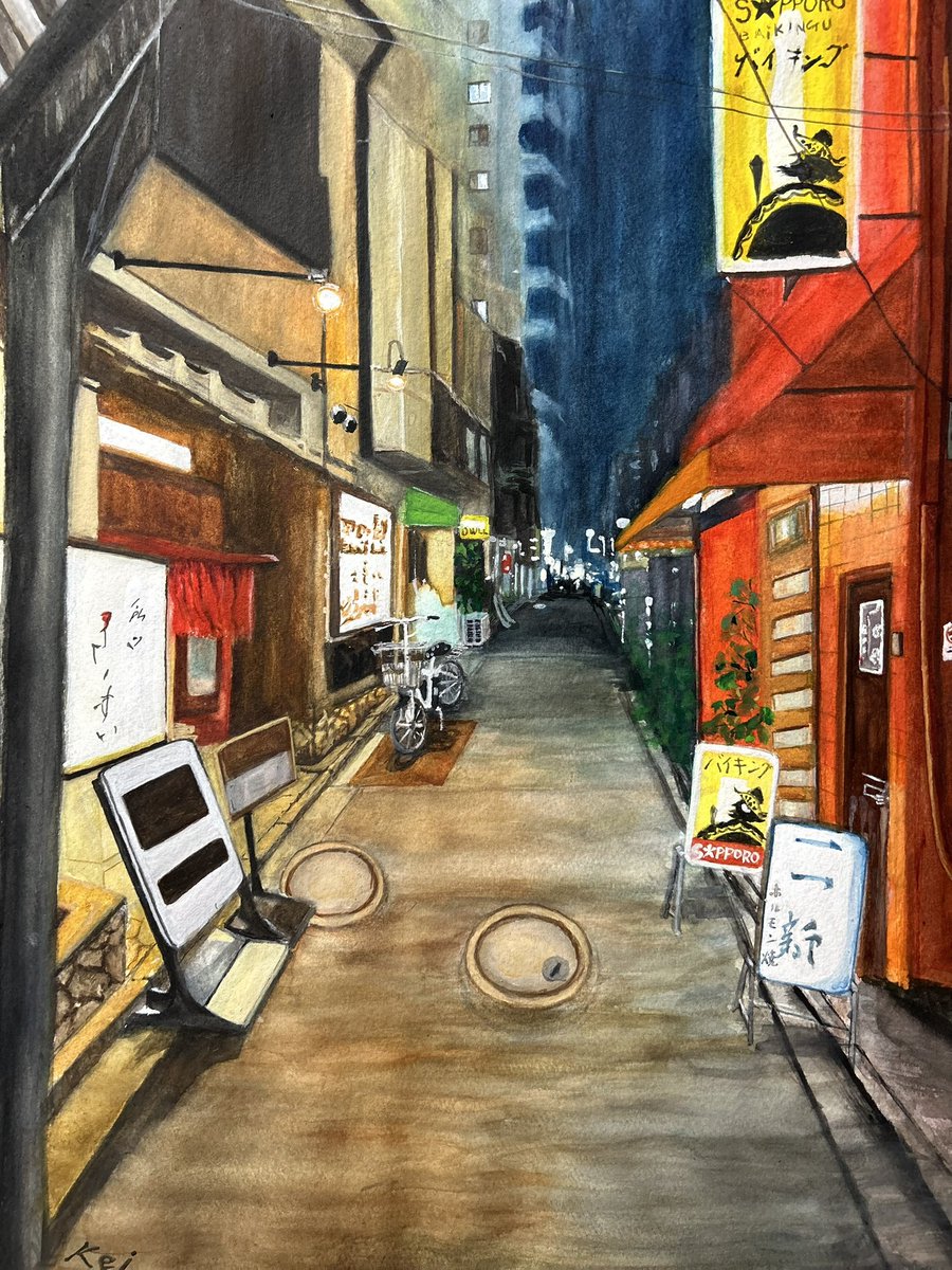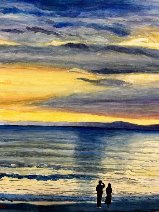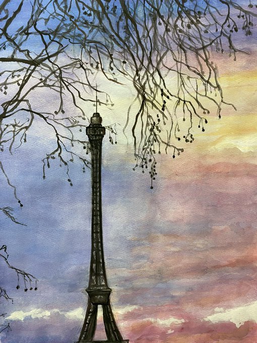 #みなさん2年前の今頃はどんな絵描いてましたか 長い間、絵を描くのは遠ざかっていましたが、ふとしたキッカケで水彩画の魅力に ハマりました😊 しかし難しい😓 「エッフェル塔の黄昏れ」 #水彩画 #風景画