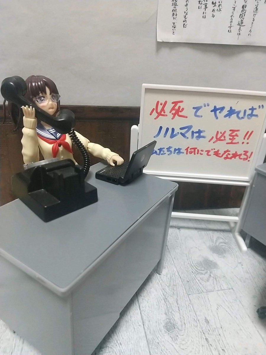 #夜のフィギュア撮影会 お題「会社」 昔からある朝礼。 大声、根性論の叩き売り、感謝と感動とやりがいのスピーチに、詰め説教…… 旧き悪しき管理体制…… 非効率のオンパレード。 ブラック体質な体育会系の会社にありがち…… パワハラは因果応報……