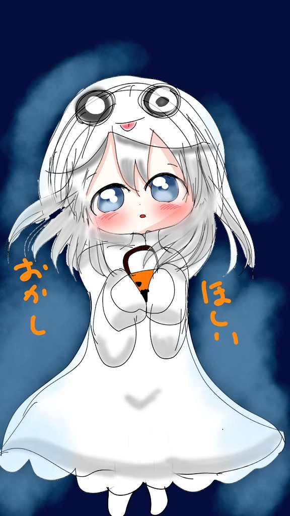 いたずらよりお菓子がいい 腹ペコお化けの仮装せなちゃん(らくがき) #創作天使と悪魔