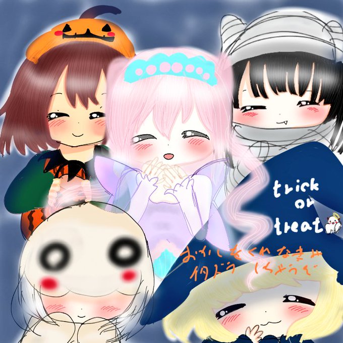 うちの子達ハロウィン🎃 (過去絵+落書きしたジュリアちゃん twitter.com/xstIh7dHTlW86y…