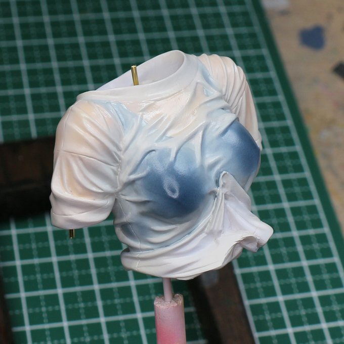 503 2760 綾波レイの最重要パーツである、濡れた水着の上にシャツを着ている部分の塗装が完了。 #ガレージキット 21/04/14 20:29