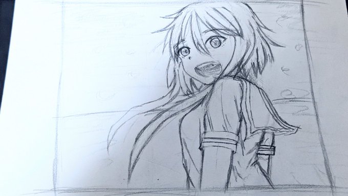 #イラスト #ラフ画 #イラスト練習 ある程度形が整ったので、これから線画、色塗りなわけですが……。 正直、この時点が一番よくできているように見えるというあれです。 こっから先が難しい……。 どうやったら上達するんだろう。
