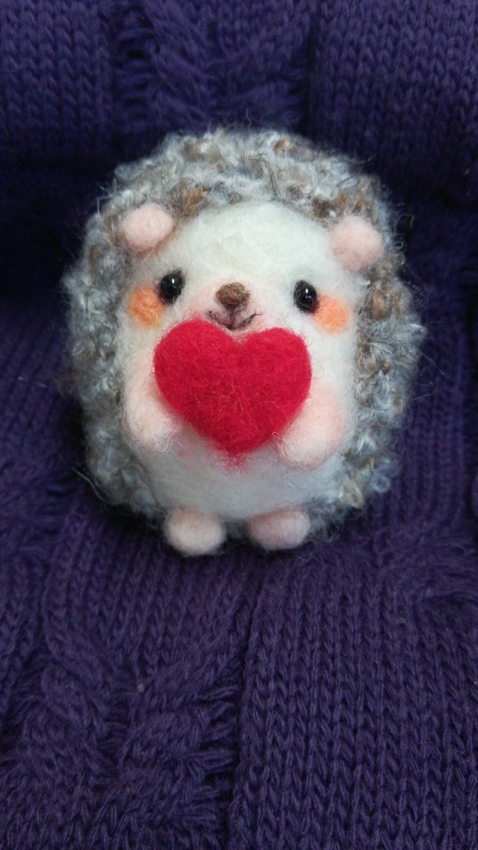 3 19 #バレンタイン #羊毛フェルト #ハリネズミ #ハンドメイド バレンタインが近いから、♥持たせてみました( ╹▽╹ ) 22/02/06 10:46