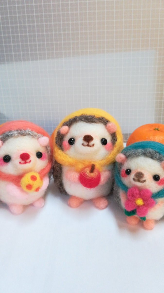 もう、何回も作ってるのに、いつも違うお顔になるね❤️お守りハリネズミちゃん🦔 #creem #minne #ハリネズミ #羊毛フェルト