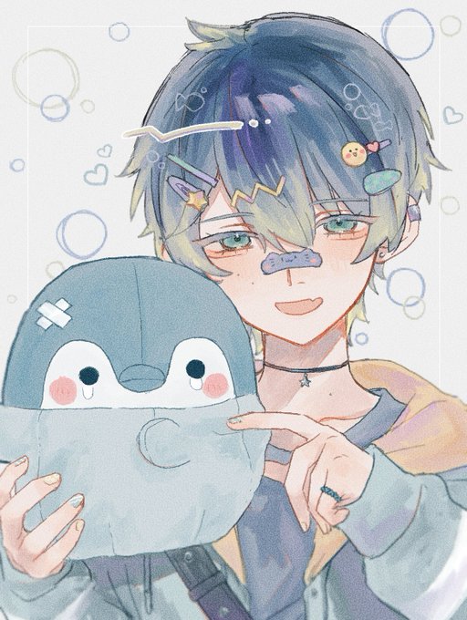 可愛くね?🐧💙🐈💛 #イラスト #男の子