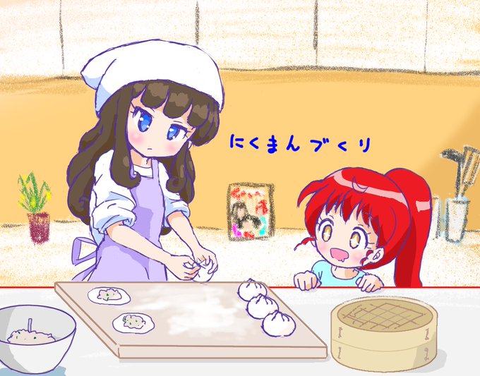 #みなさん去年の今頃はどんな絵描いてましたか 牧野由依さんと松嵜麗さんの肉まん作り配信見ながら描いてた