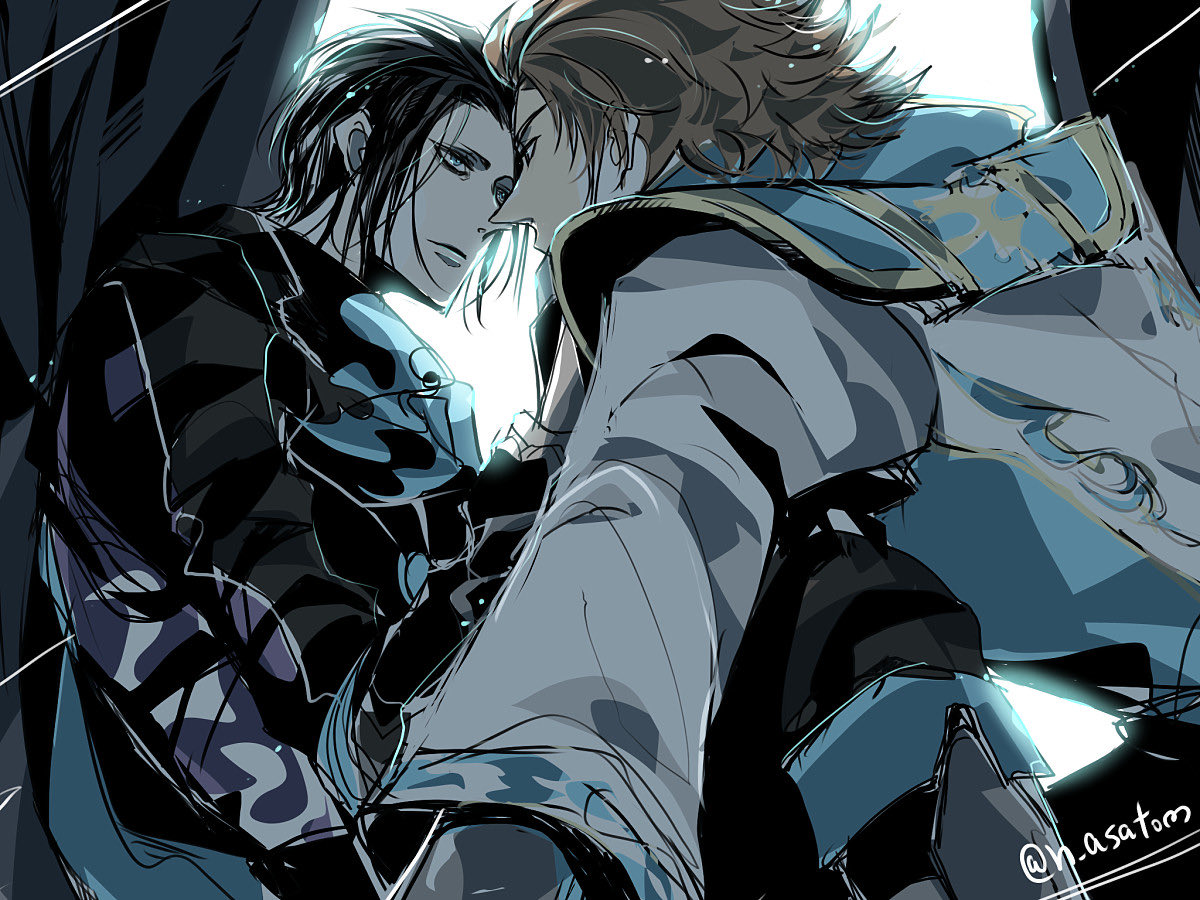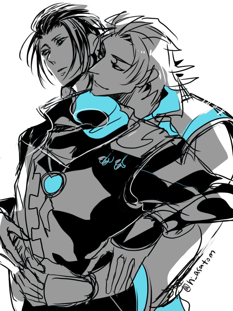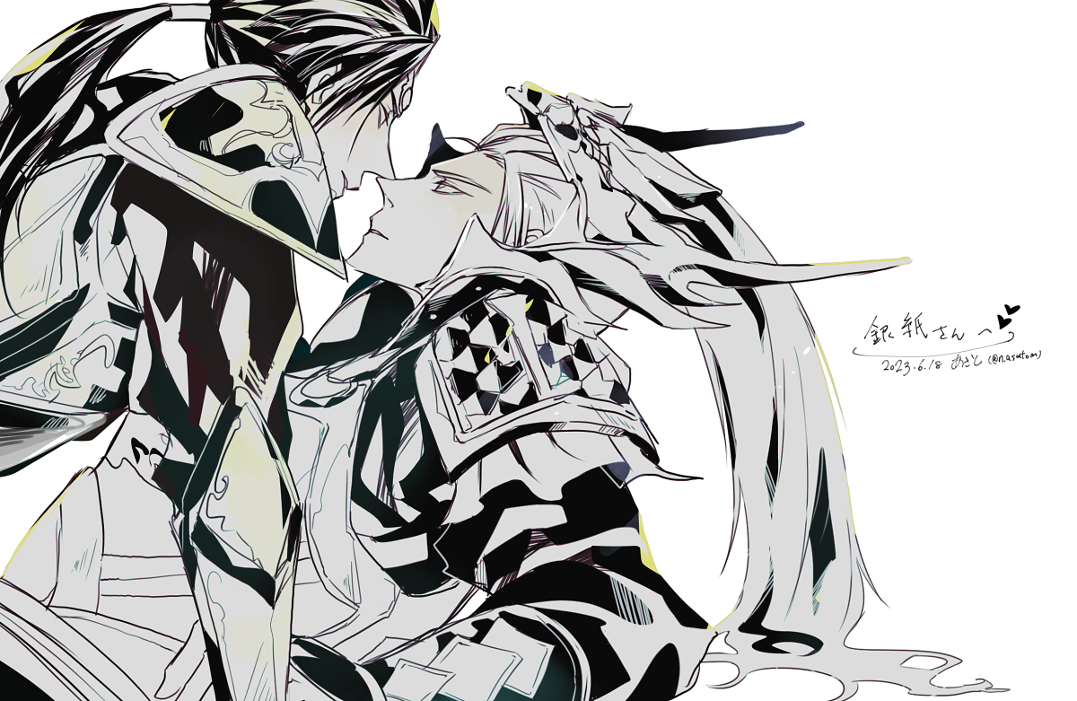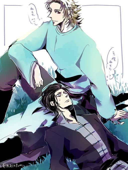 銀紙さん(@ginngami22)のおしカプ描かせて頂きましたー! 一度描いてみたかった、ばちょさん兜外されるところ・・・(見えにくいけどちょううん殿が左手で外そうとしてます) いつも見てる側だったんですが、イケメンカプ超楽しかったです!!☺️ありがとうございました! twitter.com/n_asatom/statu…