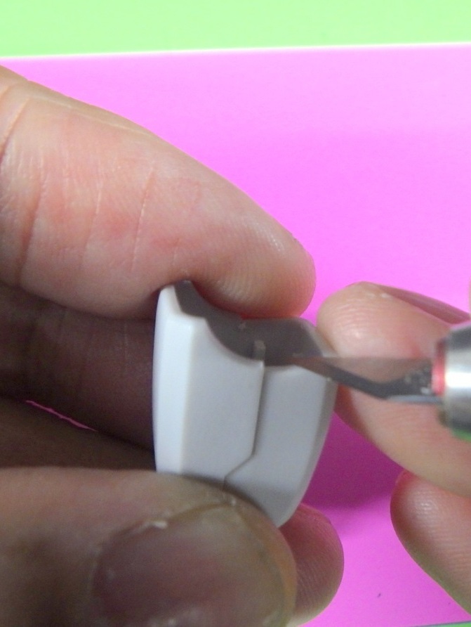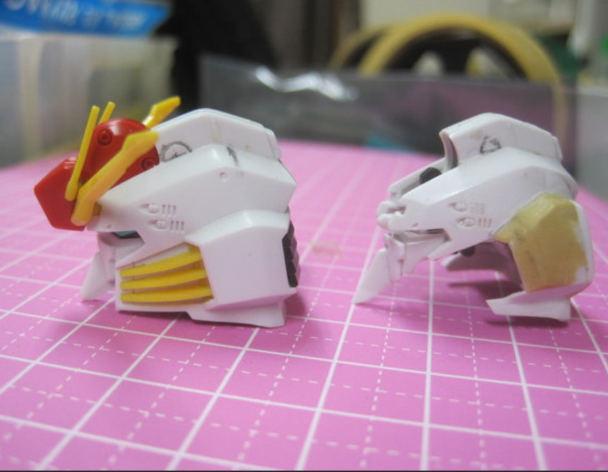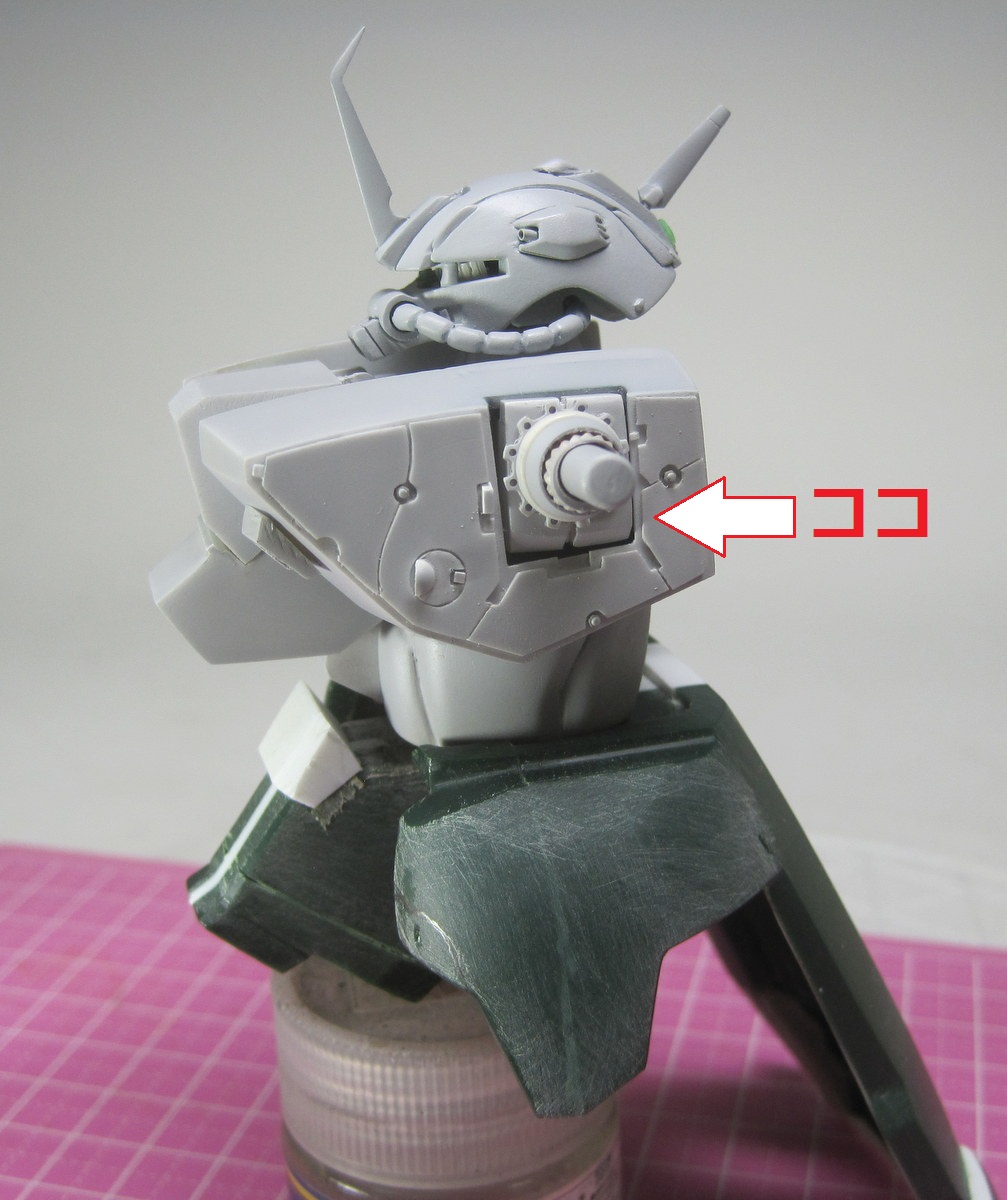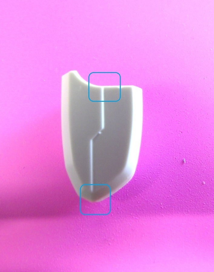#小さくて大きな違い 1枚目:ありがちなHGのライン 線が単純化されている 2枚目:可動ラインに切れ目を入れ 3枚目:同様に下部ラインも明確に 4枚目:お判りいただけただろうか? 小さな違いなのだが おもちゃから作品に移行する 「線」の簡単な移行解釈