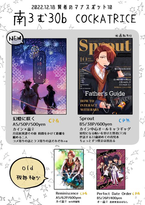 12/18のおしながきです よろしくお願いします🦊 支部 pixiv.net/artworks/10352… 🐯① ecs.toranoana.jp/joshi/ec/item/… 🐯② ecs.toranoana.jp/joshi/ec/item/…