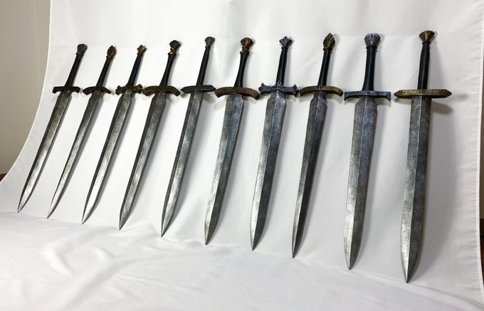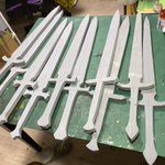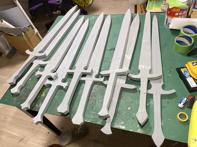 デザフェスで作った剣達は、 ①下地…造形ベースorタケシール造形 ②下地色…イベントカラー布メディウム+イベントカラー黒 ③仕上げ色…アイアンペンイント な、感じで塗装してるよ🙋♀️ ほぼ塗装割れなしだよ🙋♀️ 作業風景はYouTubeライブ配信してるから良かったら見てね〜 youtube.com/live/8dwCNpXP7…
