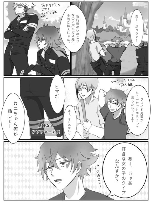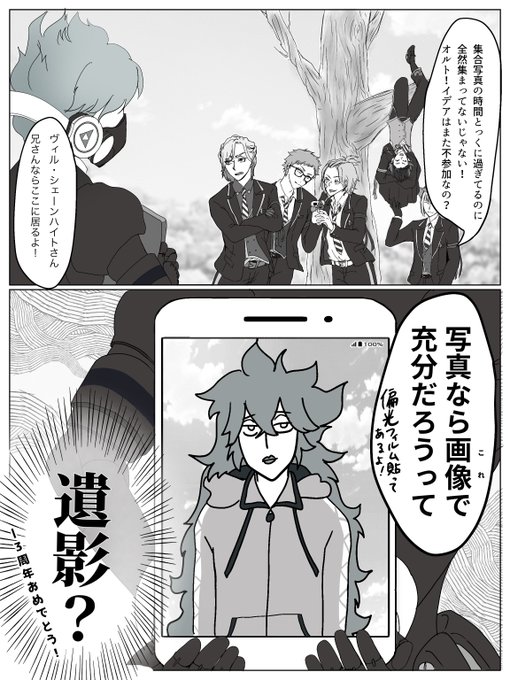 ツイステ3周年グルビ集合写真時の漫画です(NRC3年+🤖) 3周年おめでとう!! ⚠️捏造注意 ⚠️何でも許せる人向け ⚠️今日も今日とてかっこいい💀はいません #ツイステ3周年 #twstファンアート