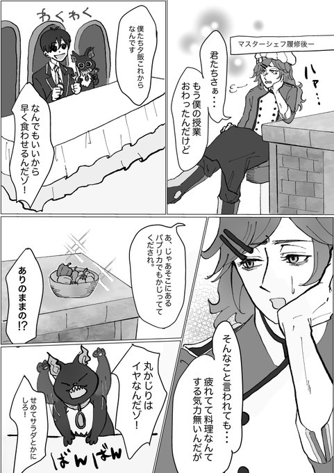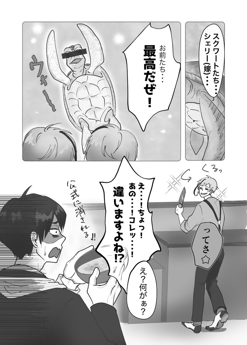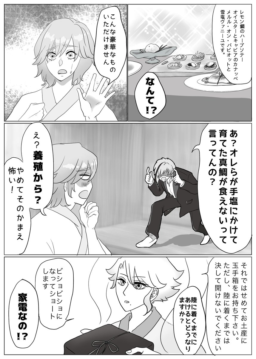 とりあえずなんか出したろという見切り発車のタマシュナ漫画です(2P) 🦦🦇🦁👑 ⚠️ジジイ注意 ⚠️衣装はご自分の目で補完してください ⚠️観光地での押し売り注意 #twstファンアート #ツイステファンアート