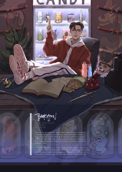 lastly, baekhyun's profile for monster au (+hunter weapons)🌙✨🔪👹 #BAEKHYUN
