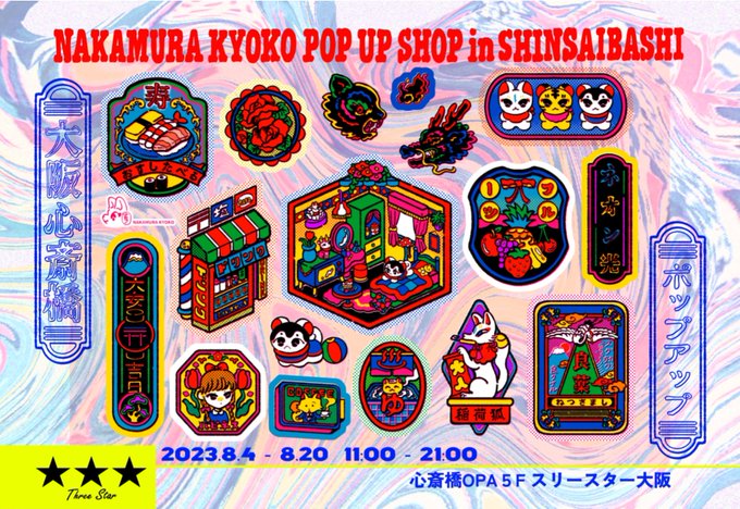 【お知らせ】 NAKAMURA KYOKO POP UP SHOP in SHINSAIBASHI 2023年8月4日~8月20日 営業時間: 11:00 - 21:00 大阪でのポップアップショップが心斎橋OPA5階 古着屋「スリースター大阪」にて開催されます! instagram.com/threestar_osaka