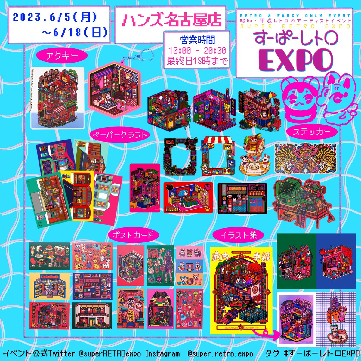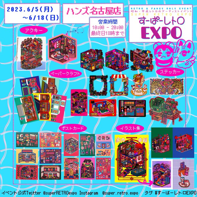 すーぱーレトロEXPO atハンズ名古屋 @superRETROexpo 🌷すーぱーレトロの販売グッズ詳細🌷 名古屋では初販売のアイテムもあります ハンズ名古屋店 10F催事コーナー @Hands_Nagoya 2023年6月5日(月)~6月18日(日) 10:00~20:00 ※最終日18時まで superretroexpo.club/handsnagoya2023 #すーぱーレトロEXPO