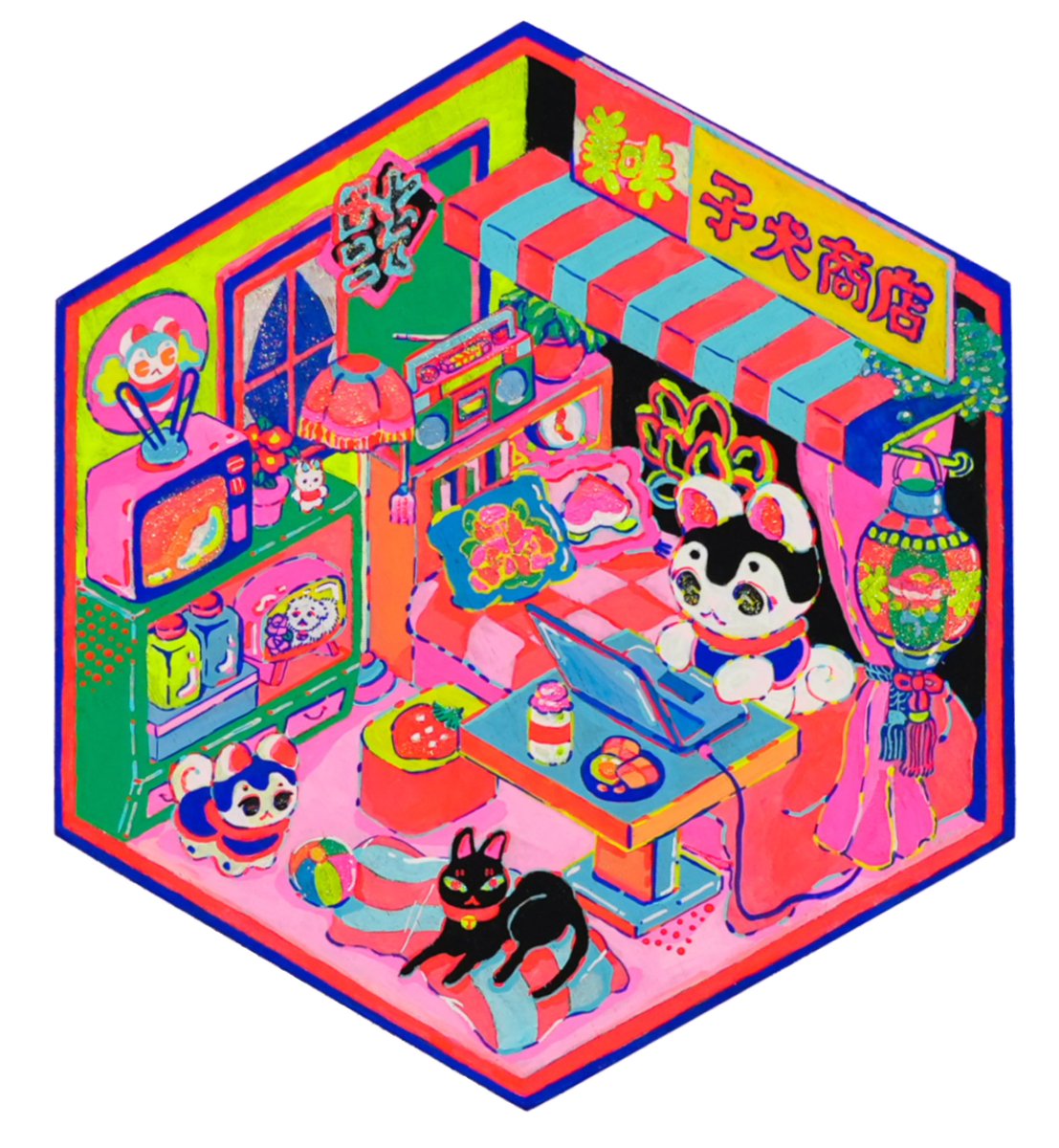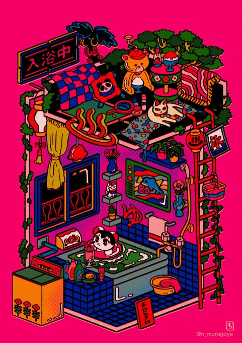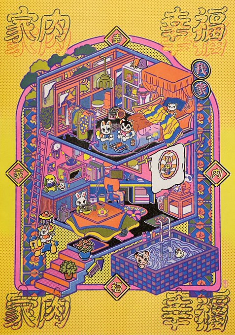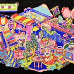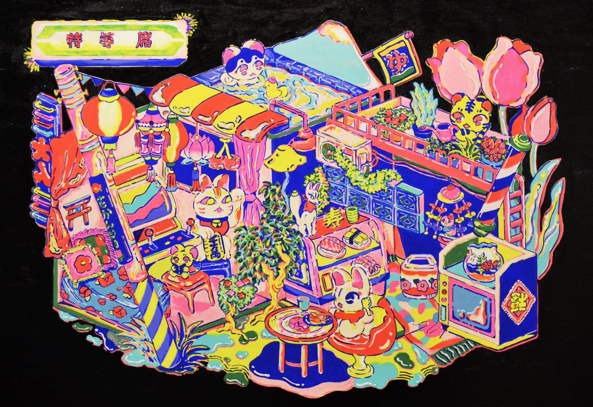 鬼太郎EXPO出展作品「ゲゲゲの森」 ゲゲゲハウスでくつろぐ鬼太郎たちやお気に入りの妖怪を描きました 写真で銀色っぽく見えてる部分はホログラム箔押しです✨ #鬼太郎EXPO @kitaroanime50th 2023. 8/11(金)~8/27(日) 池袋サンシャインシティにて開催 kitaro-expo.com twitter.com/i/web/status/1…