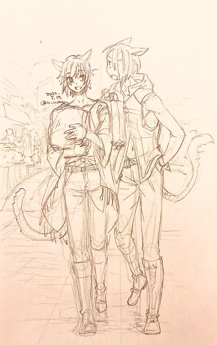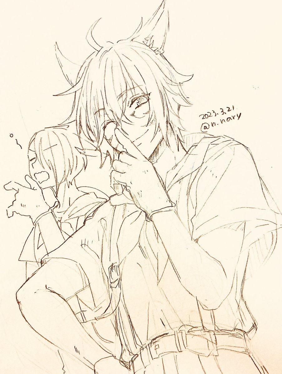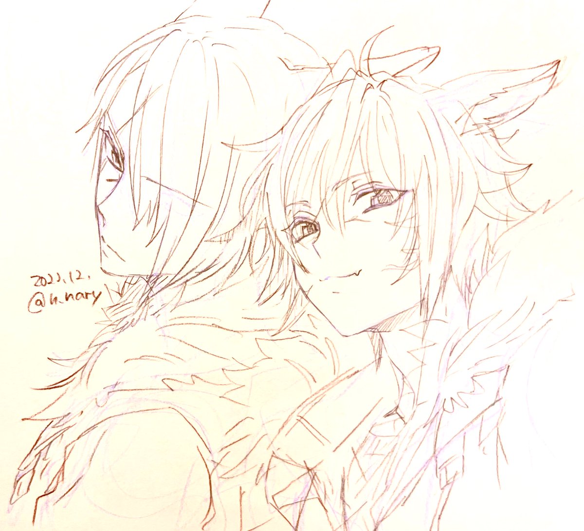 らくがき。 久々にふたりかけたー✨