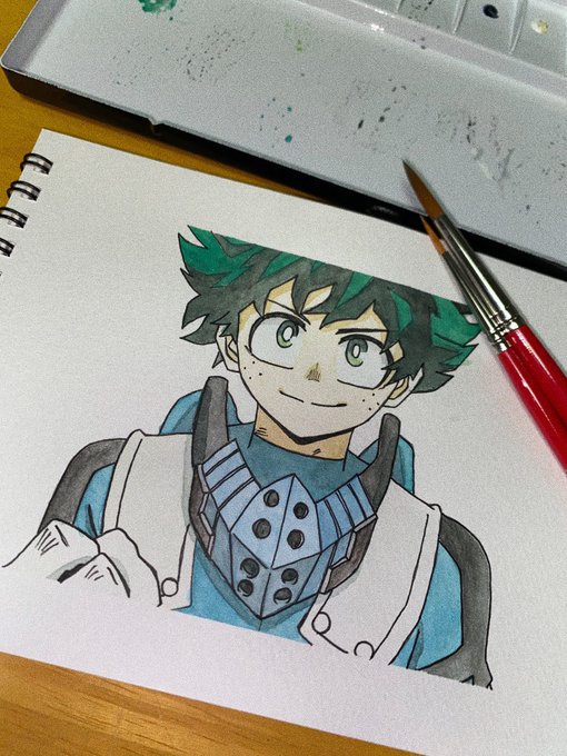 0 2 アニメ5期が楽しみすぎてデク君描いてみた✏︎ 水彩絵の具を初めて使ってみたけど難しい💦 #僕のヒーローアカデミア #緑谷出久 #デク #水彩画 #手描きイラスト #ヒロアカ 21/03/01 23:26