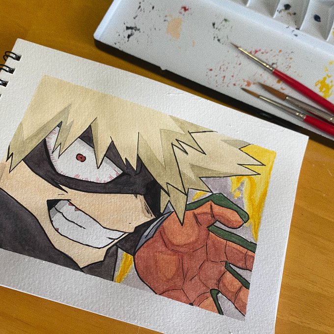今日コンビニでヒロアカのフィギュア見つけて買ったけど、オールマイトとお茶子ちゃんが当たったのね! すごい嬉しいんだけど、かっちゃんも欲しかった😭 買えただけ嬉しいんだけどね!! #僕のヒーローアカデミア #爆豪勝己 #かっちゃん #手書きイラスト #水彩画