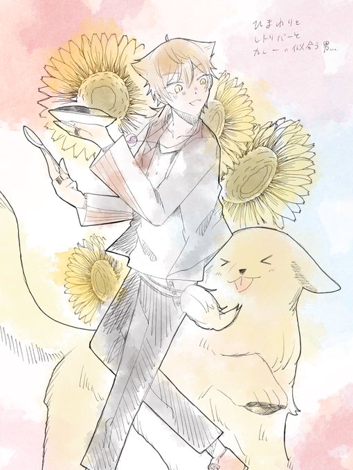レトリバーとひまわりとカレーの似合う伏見ガクという男……の落書きです。#絵ガク