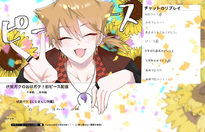#絵ガク #伏見ガク5周年 ✨🌈✌️🦊5周年おめでとう🦊✌️🌈✨ めでたい!!!!!!!!!これからも応援してます!!!!!!