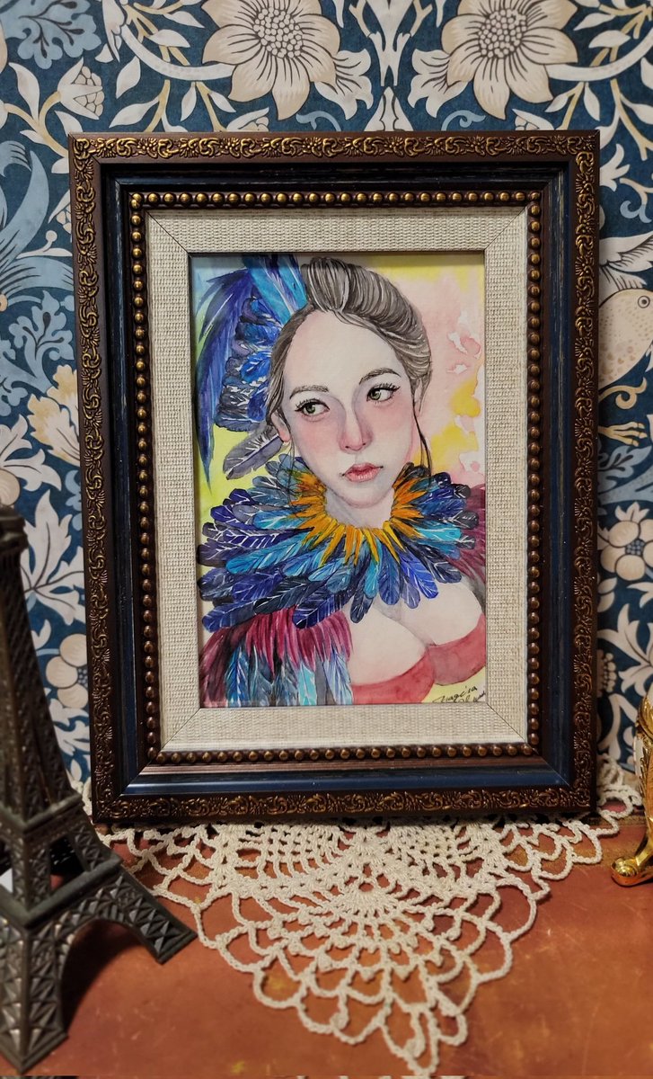 #イラスト #illustration #painting #私の絵柄が好みって人にフォローされたい #myartwork ご注文絵。 ご依頼主様の誕生花や誕生鳥をモチーフに描かせて頂きました♪ 『麗人』