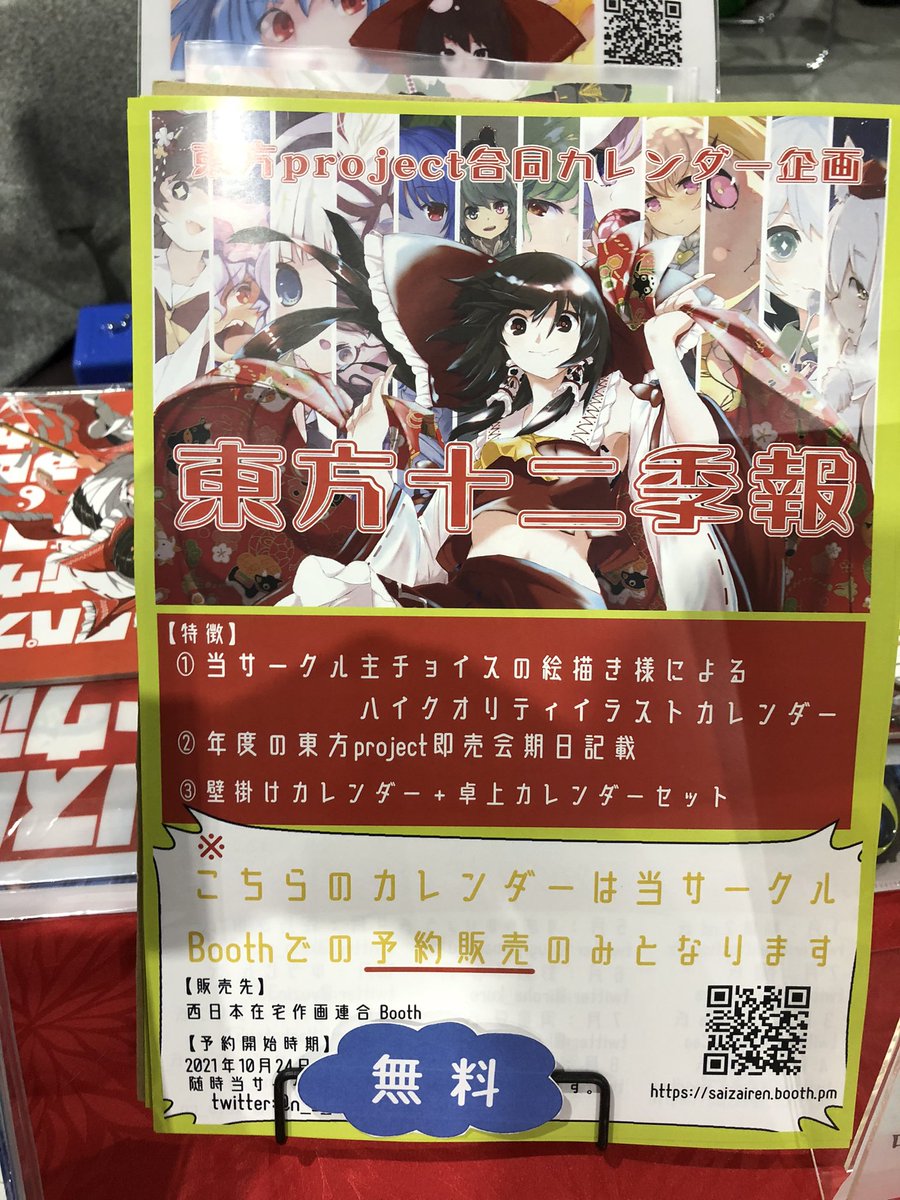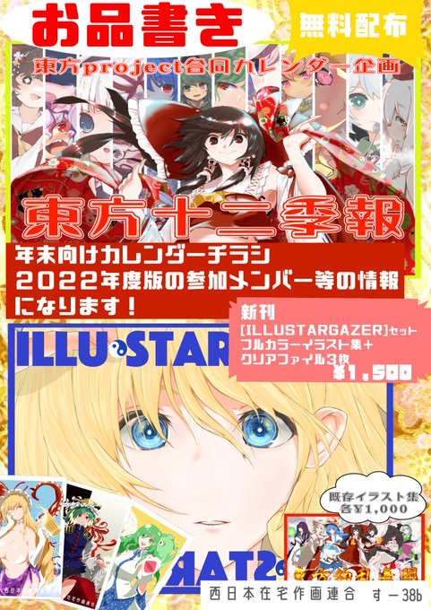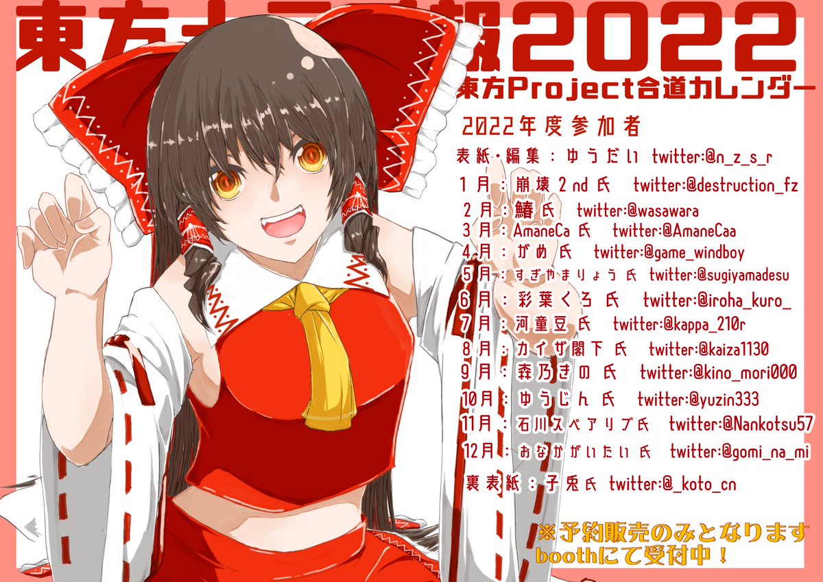 【告知】東方project合同カレンダー 2022年度版「東方十二季報」boothにて予約受付中になります 本年度参加者も実力派揃いの豪華メンバーとなっております✨ 予約注文限定での販売となりますので、ご興味ある方は是非下記URLをご覧ください 【予約注文先】saizairen.booth.pm/items/3374073 #東方十二季報