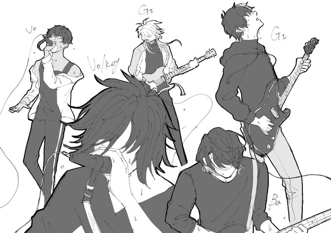 156 526 揃ったー!勝手設定愉快なバンドメン!! 豊前と稲葉は解像度足りないから手直ししなきゃだけどやっと全員描けたー! 原稿もりもり頑張るぞ😤 ※現パロ、バンドパロ、桑名の目見えてる 23/04/08 21:42