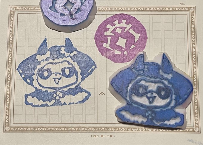 11 57 #でびるさまにささげるえ #でびでびでびるさま 消しゴムハンコを始めたんですけど 好きなものを彫ると早く上達すると聞いたので でびさまと紋章にしました 楽しく作業できたのでhappy☺️ 23/01/09 18:14