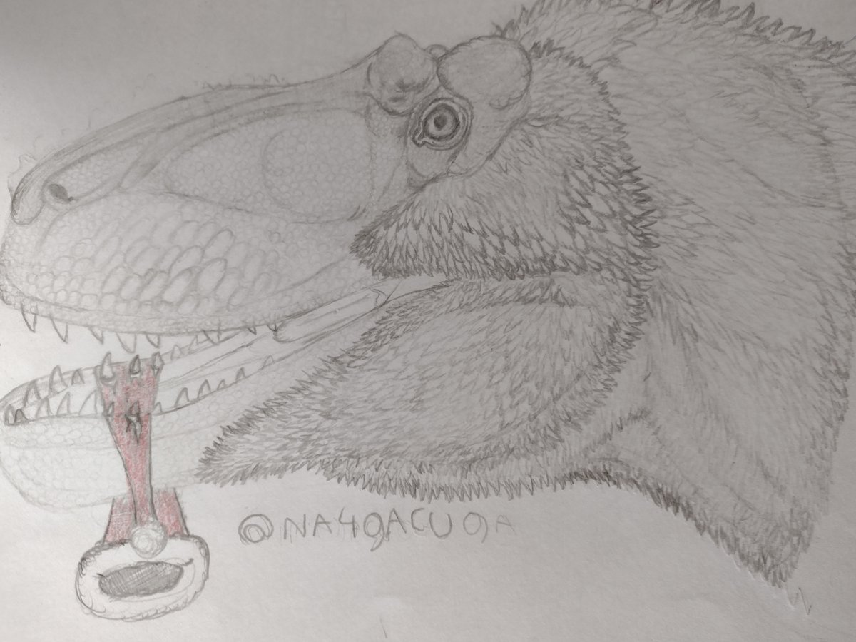 #Nanuqsaurus hoglundi, a arctic #Tyrannosauridae that lived in the Cretaceous in 70-68 Ma in the Prince Creek Formation Alaska, he would possibly have feathers because the environment he lived in had little sunlight and was extremely cold #paleoart