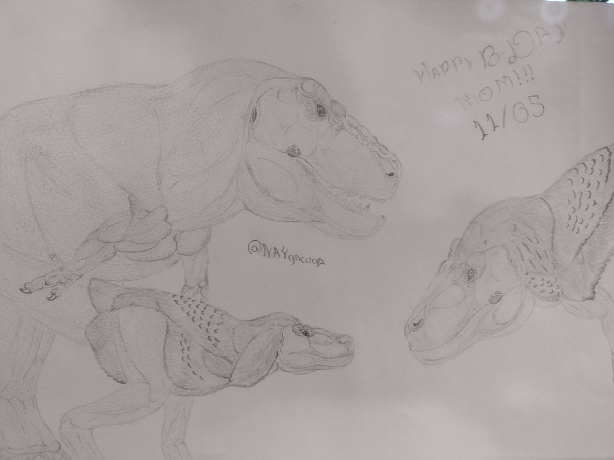 Family #tyrannosaurusrex ,The largest Tyrannosauridae , lived in Hell creek and Lance formation, late #cretaceous 68-66 ma, were possibly social animals living in family groups. A gift for my Mom, T. rex is her favorite #dinosaur #paleoart