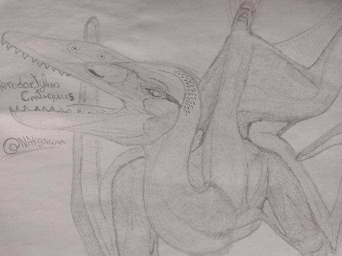 #Pterodactyus Antiquus (Holotype). The first animal to be recognized as a #Pterosaur. Had 90 teeth and its diet was based on small animals and invertebrates, It wasn't a big animal, it was about the size of a Hawk at 1.04 m (1/2) #paleoart