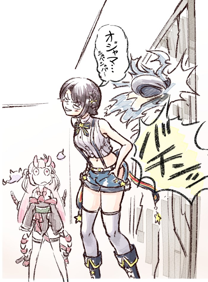 59 233 色々とすごいコラボだった。。。 そしてこれは三人でポーズとってる姿が柱の男に見えたので我慢できずに描きなぐった謎の絵。 #あいちゃんズオフ #ksonONAIR #ksonART 23/08/16 01:19