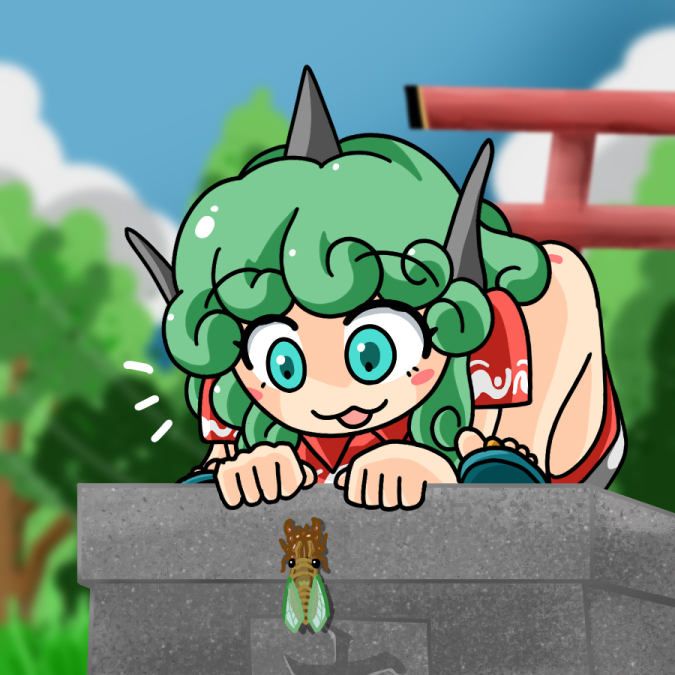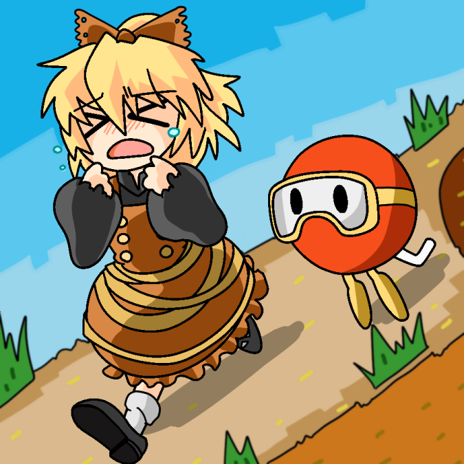 55 173 #深夜の真剣お絵描き60分一本勝負 プーカァに追いかけられる黒谷ヤマメさんです。 地上に逃げるのは悪手なんじゃよ… 23/08/04 00:38