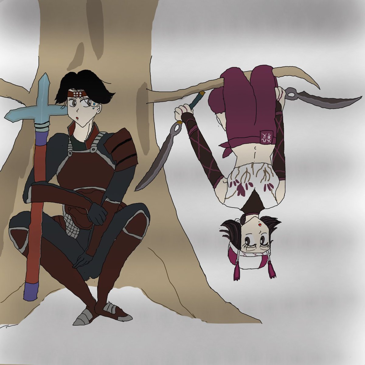 るーみっく構図の幸村とくのいち。 背景つけて再投稿です。 #戦国無双 #さなくの #イラスト