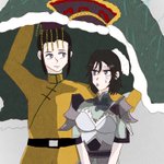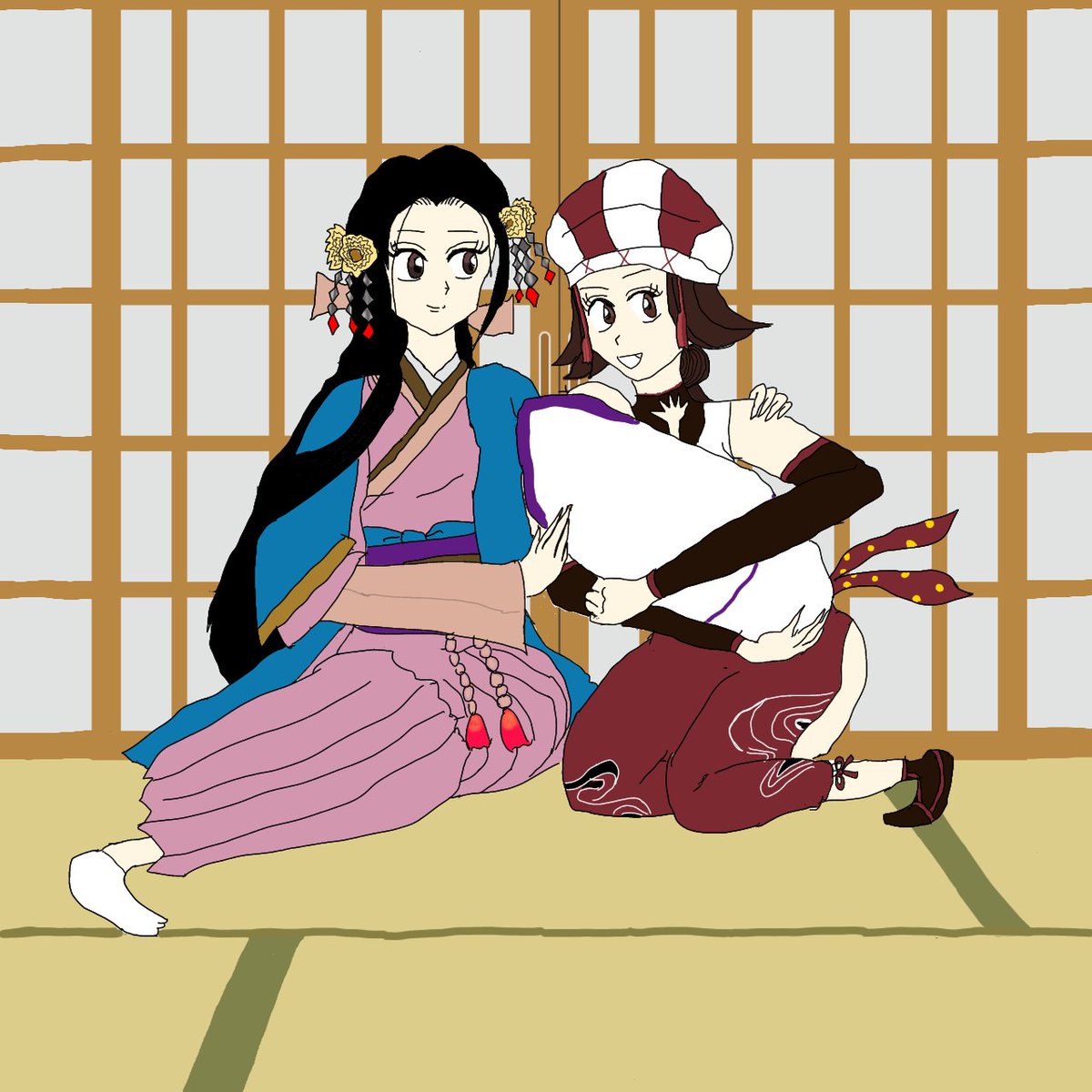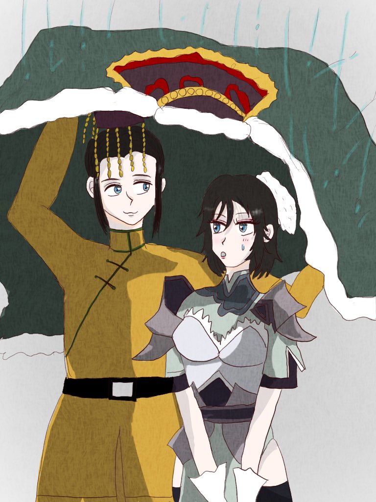 6劉禅さまと星彩。 禅さまの服で雨宿りしてる禅星のつもりです☺️ #イラスト