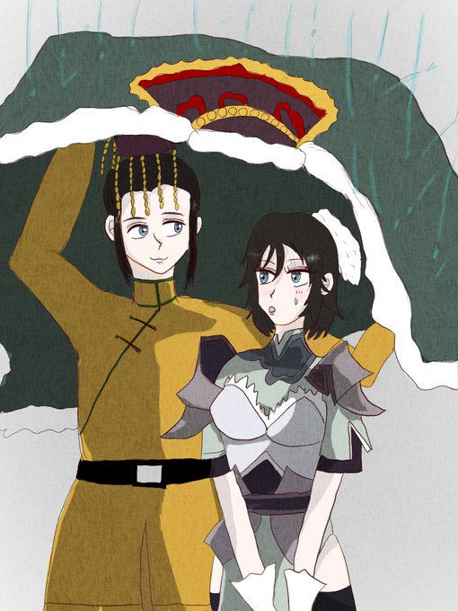 2 21 6劉禅さまと星彩。 禅さまの服で雨宿りしてる禅星のつもりです☺️ #イラスト 23/01/04 11:13