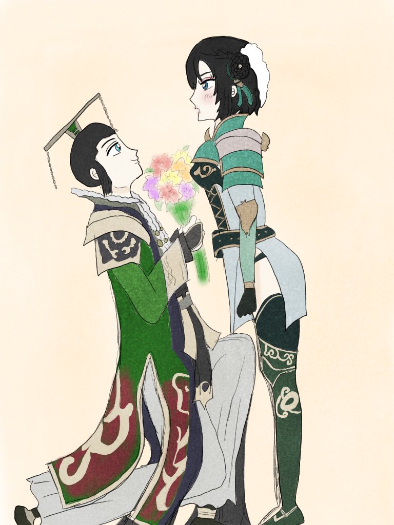 ホワイトデーの劉禅と星彩。🌸🌸 いつもとは逆位置。。 #イラスト