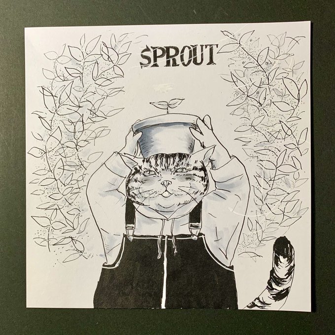 #kuretake_inktober2021 20日目「SPROUT」芽 アルファルファと言う細かいもやしみたいなのを昨日食べましたが もやしは発想飛ばせなかったので😅 #inktober #inktober2021 #zig #猫イラスト #モノクロイラスト