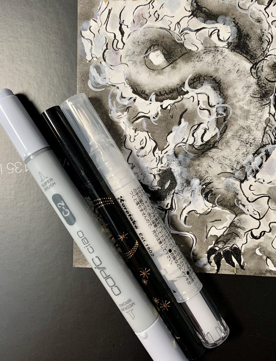 #kuretake_inktober2022 5日目「FLAME 炎」 炎から想像したのは火炎竜、サラマンダーを描きました 難題が多い中で今日のは描きやすいお題でした #inktober2022 #kuretake #愛ライナー #白筆ぺん