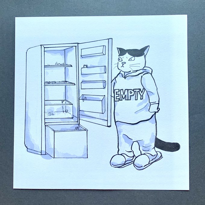 #Inktober_PerfectChallenge #inktober #inktober2022 #kuretake_inktober2022 14日目「EMPTY からっぽ」 月半分近くなりました、そろそろ息切れして来ましたか #猫イラスト