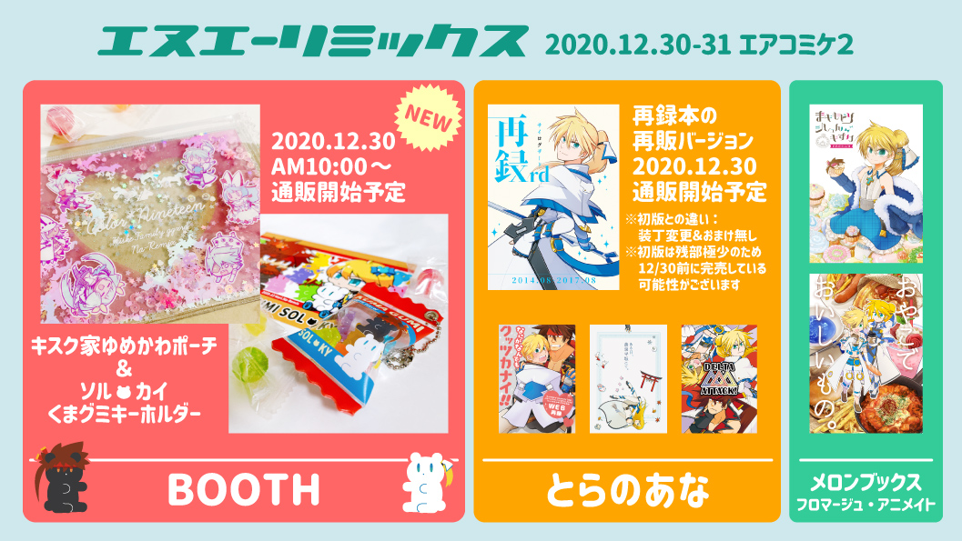【新刊】2021年1月~2022年5月までに公開したイラスト・漫画・らくがきなどに、一言コメントを付けてまとめたweb再録フルカラー本です。 ソルカイ多め。GGST本編&アナザーストーリーネタバレ・ケモ耳・女装・女体化なども含みます。 🐯ecs.toranoana.jp/joshi/ec/item/… #世界平和の定義2 #GuiltyGearWebOnly
