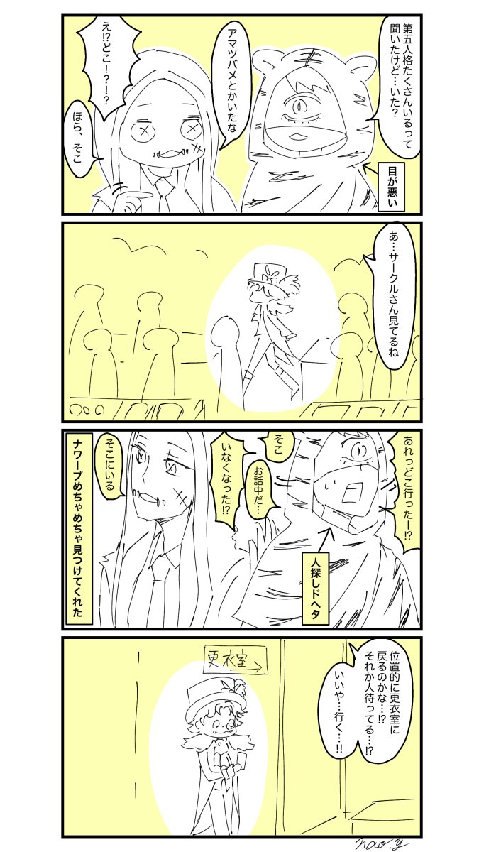 ※コスキャラ代理 先日の更衣室ではこんな感じでした。 いい加減に実録描いていきたいけど周りにおもしろい人ばかりで書ききれないからラフでいいかなぁぁ!