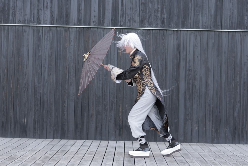 ※コスプレ ※キャラ崩壊 これは本気で強風に耐えている白黒無常 (ネタ用に撮ったわけではない)(傘やぶけました)