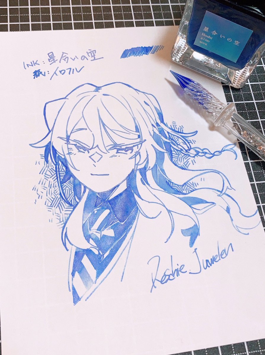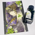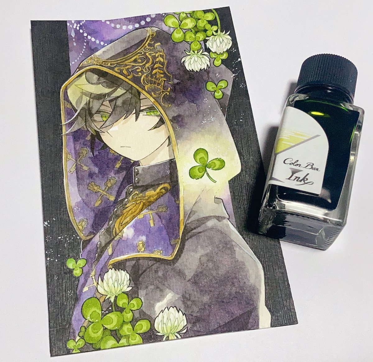 #万年筆インク版ワンドロ 初参加させていただきます。約1時間半! 色■深緑系、または近い色 お題■「ピアス」 使用インク■Contact Super Shokido
