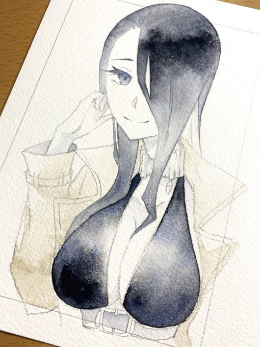#オレンジ使った絵を見せて トランスペアレントオレンジ(PO71)と インダンスロンブルー(PB60)で明暗作るの好き好きー 半々で混ぜるとほぼニュートラルグレーなので、 ちょっとだけオレンジ増やして暖色に、 ちょっとだけブルーを増やして寒色にと、 2色だけで微妙なニュアンス作れます