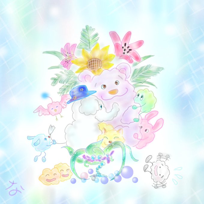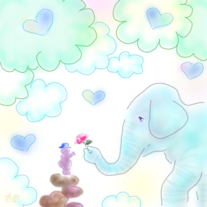🐻🦝🐱🍰💐🐑 そ う だ ・・ モフ曜日だ モフ曜日なのでモフ画像を貼る #イラスト #一次創作 #絵描きさんと繋がりたい ぞうさんの~ ハナから~花をもらう ミスターモフ 💗🐰🌹🐿️🌺🐥