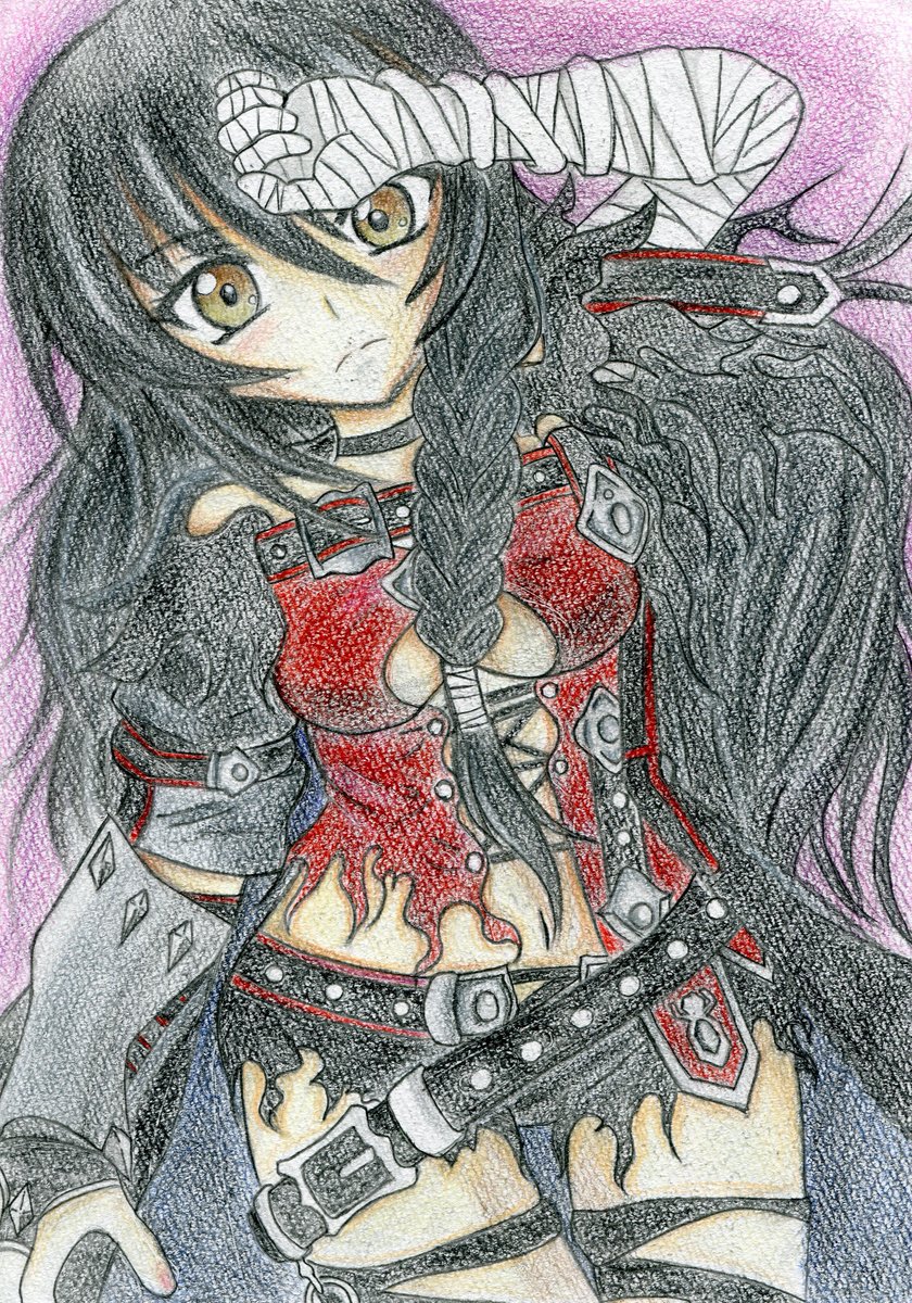 アナログでベルベット描きました 色鉛筆を使うの初めてだけど奥深いなぁ 40色のものを買ったけど赤と黒のバリエーションが少ないから追加していろいろ試していきたいな うーむ…難しい… あと装飾大変だわ…アニメーターおそるべし… #テイルズ #イラスト #色鉛筆 #ベルベット・クラウ