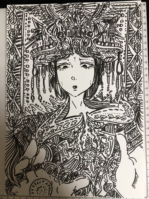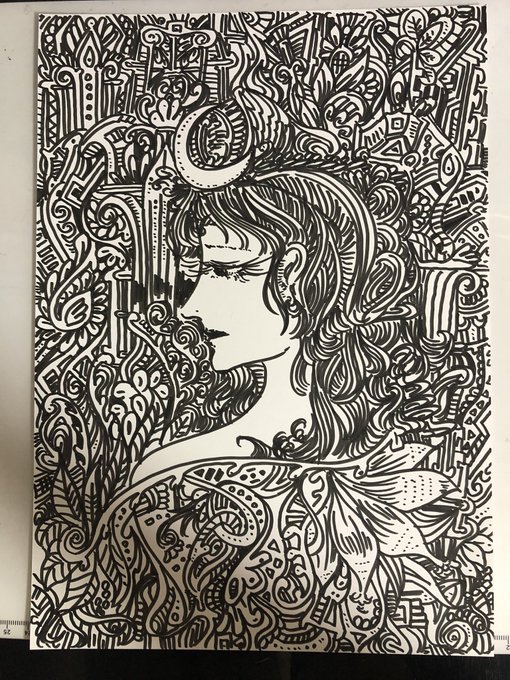 0 2 切り絵の下絵完成。 バステト神を中央に配する。エジプトがテーマ。 #猫 #切り絵 23/01/10 13:07