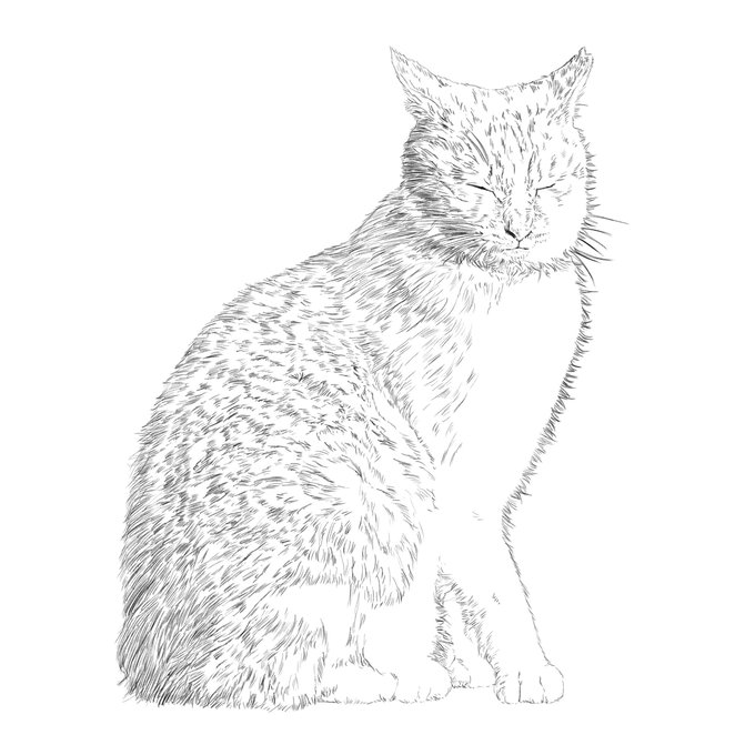 デジタルでペンで描いたっぽく猫を描いてみた。 #猫